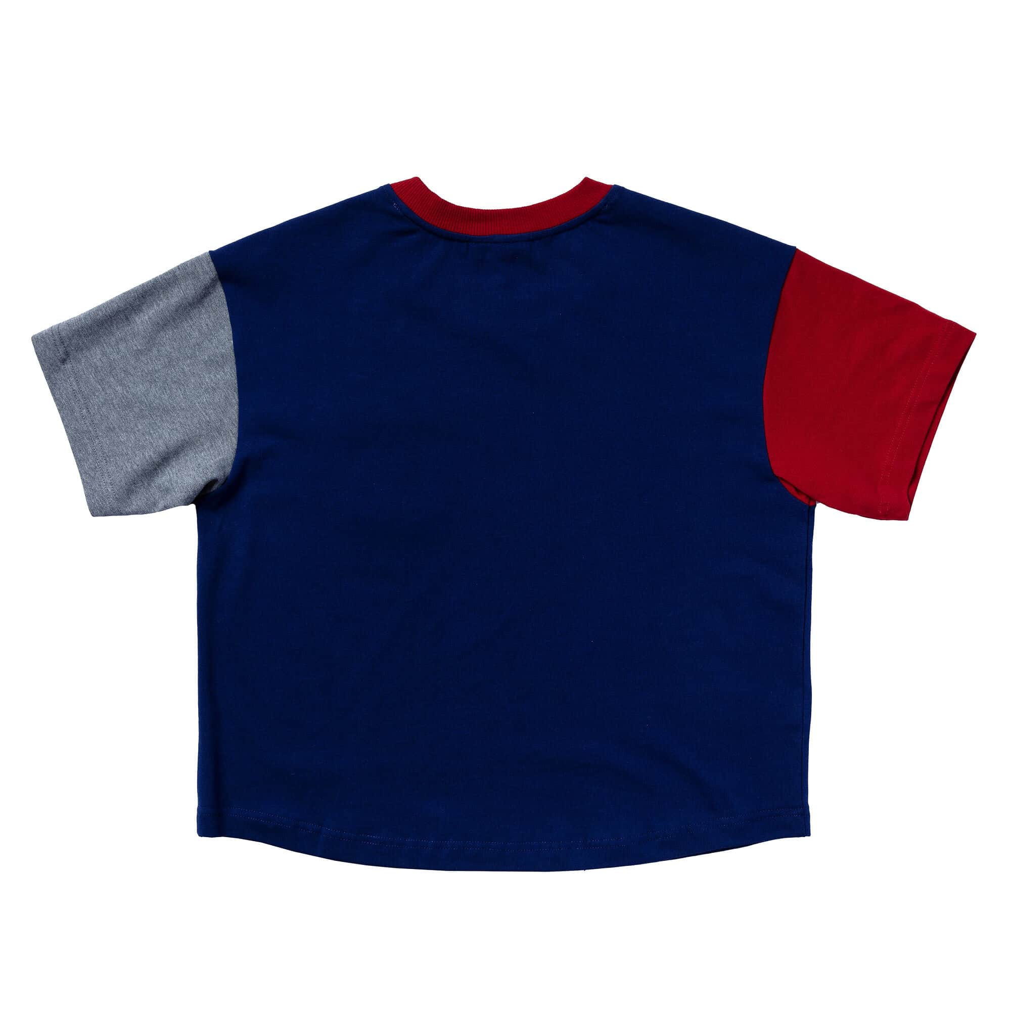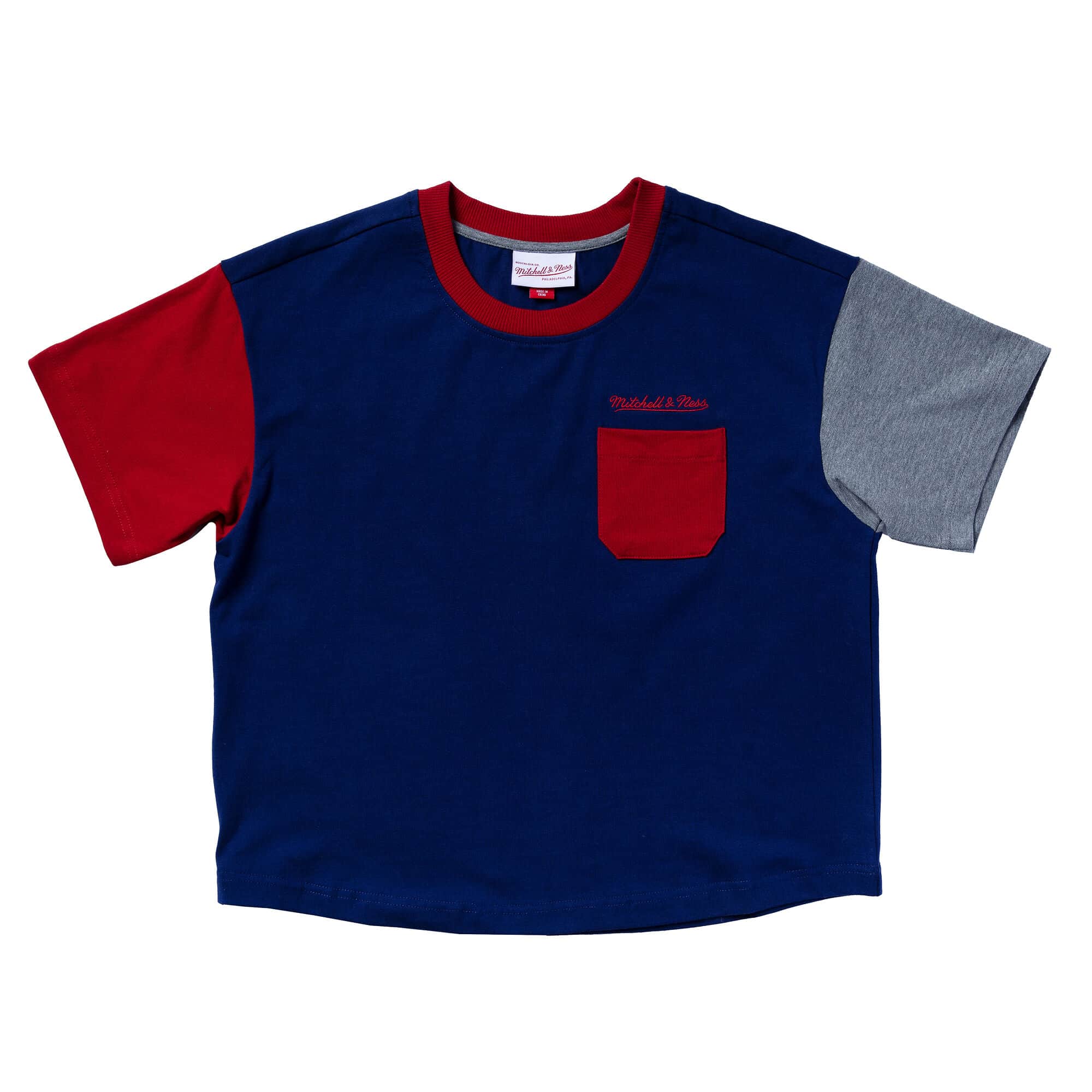 Drop shoulder silhouette with color blocked sleeves and front pocket