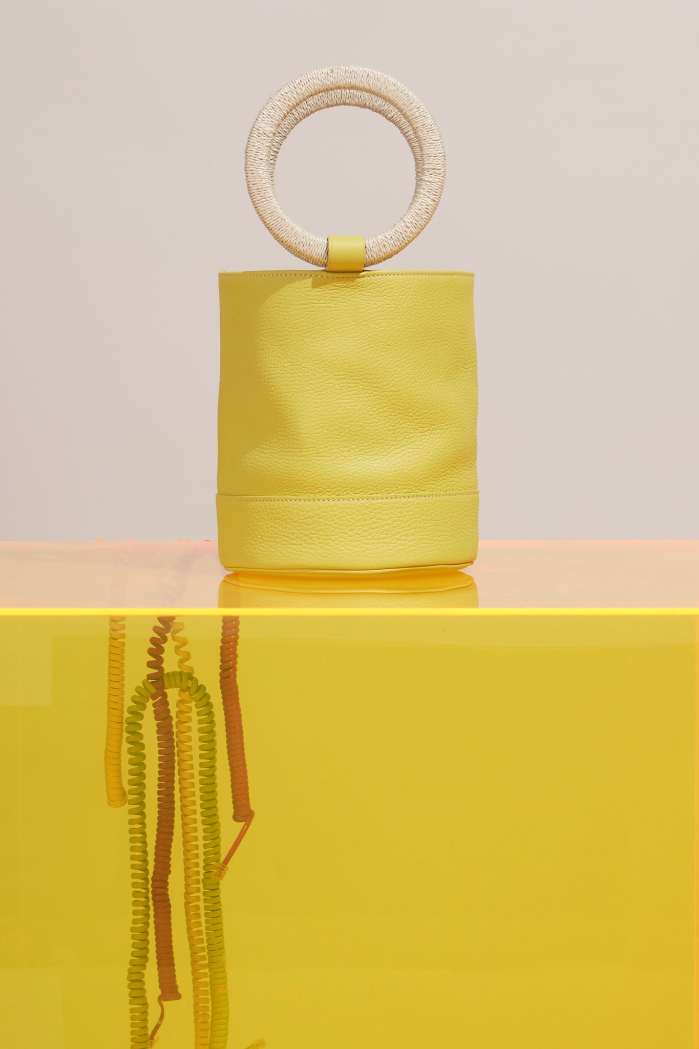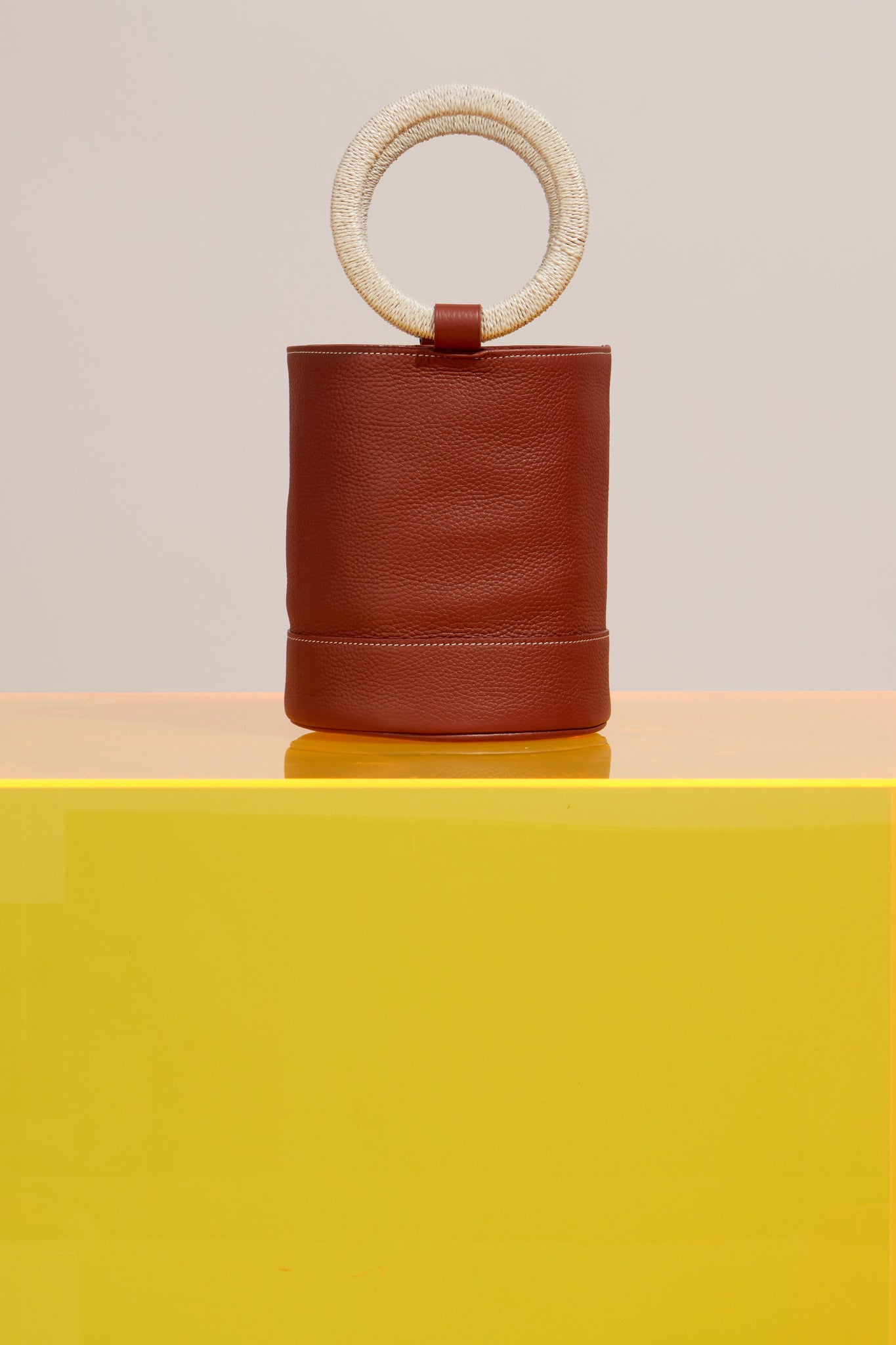 Structured Leather Bag with Raffia Wrapped Handles